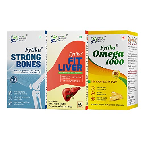 Fytika Strong Bones Fytika Strong bones Tabs. is a natural source of calcium and vitamin D3 that fulfills the quantity of calcium in the body naturally. Each Tab. contains Calcium 1000mg and Vitamin D3 400 IU along with Magnesium & Zinc these herbal Tabs. helps to increase bone density promotes stronger bones and s the s caused due to the deficiency of Vitamin D3 and Calcium. Fytika Fit Fytika Fit Contain Milk Thistle Extract may . Regular supplementation with Omega 1000 will help minimize joint improve joint flexibility enhance health and support brain function. Fytika Omega 1000 Omega-3s are a family of essential fatty acids that play important roles in your body and may provide a number of health benefits. As our body cannot produce them on its own you must get them from your diet. The three most important types are ALA (alpha-linolenic acid) DHA (docosahexaenoic acid) and EPA (eicosapentaenoic acid). ALA is mainly found in plants while DHA and EPA occur mostly in animal foods and algae. Common foods that are high in omega-3 fatty acids include fatty fish fish oils flax seeds chia seeds flaxseed oil and walnuts. For people who do not eat much of these foods Fytika Omega 1000 an Omega 3 Supplement that has ingredients like EPA DHA and other Omega fatty acids is often recommended.