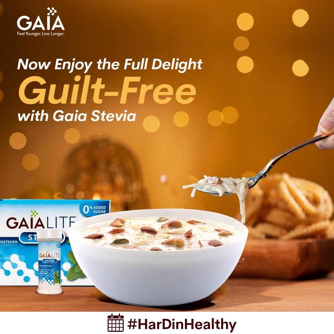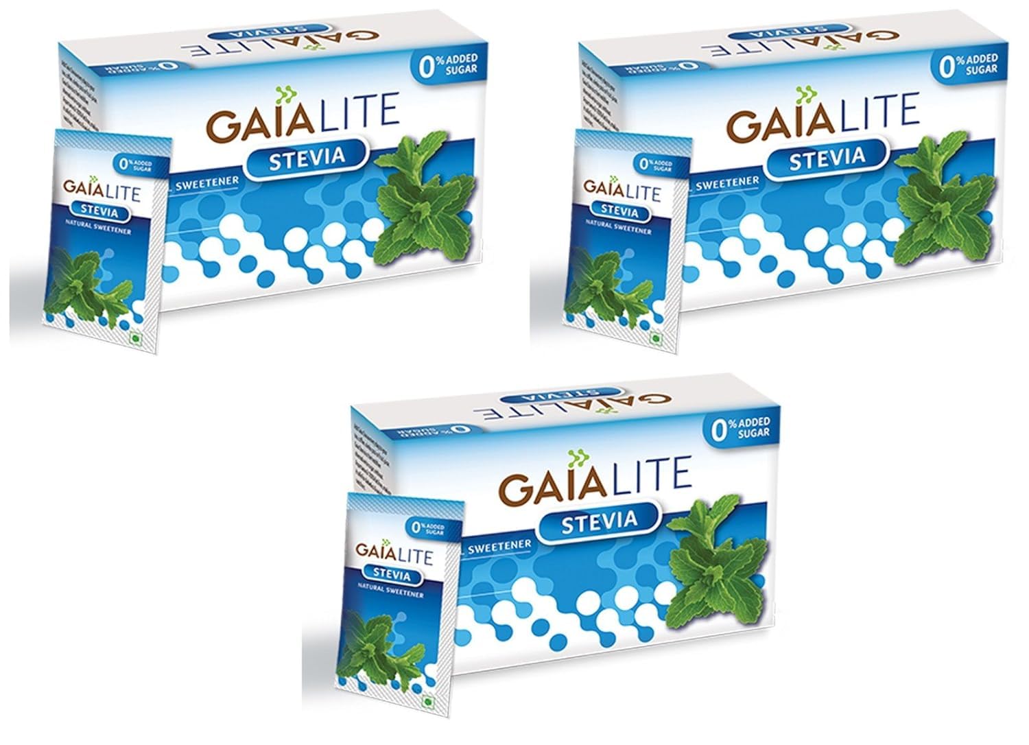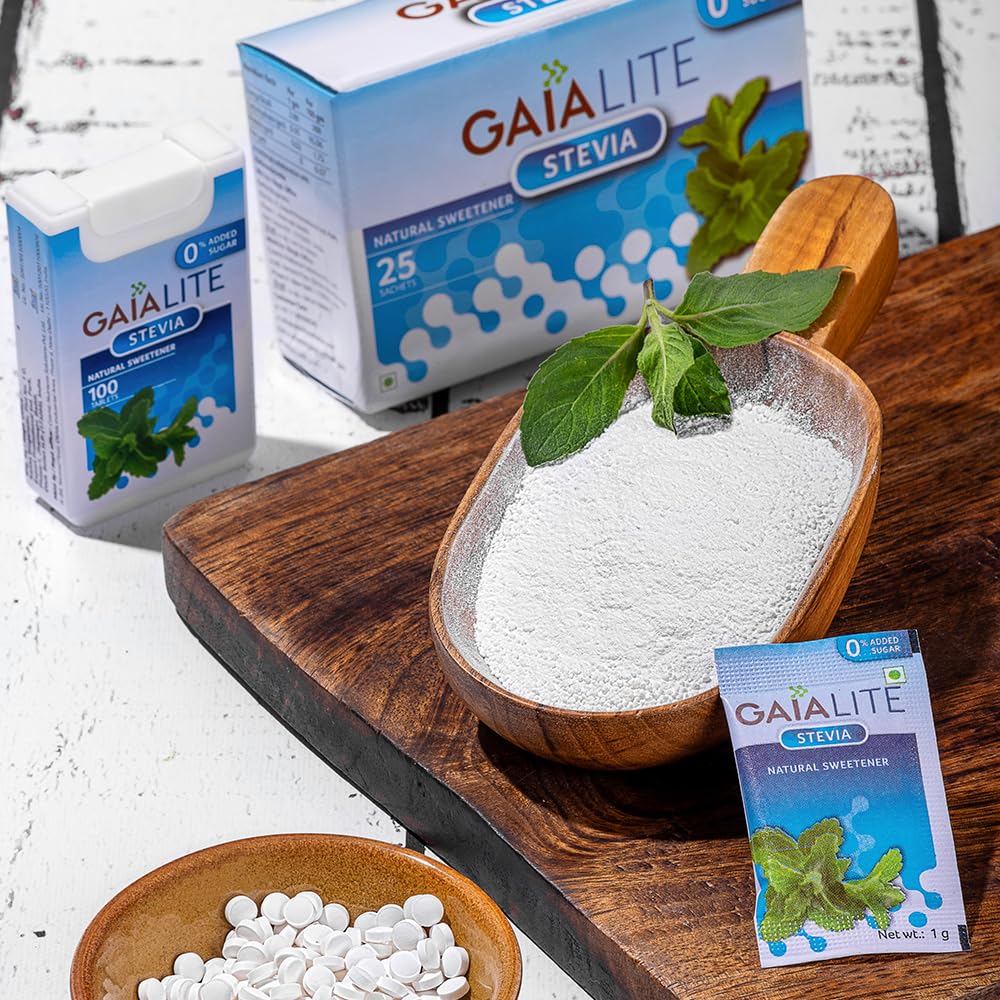 Gaia Lite Sweetner - Stevia 25 Sachets Pack (Pack of 3)- Natural Sugarfree Sweetener Perfect for Diabetes Management and Weight Loss| Quick Dissolve and a Healthy Substitute for Sugar|Made with 100% Pure and Natural Stevia Extract. With Zero Calories and Zero Sugar|Try Gaia Stevia Today!