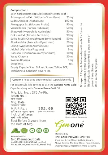 GENONE KAMAGOLD Extra Power with Swarn Bhasm Capsules - 20 Capsules