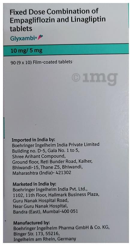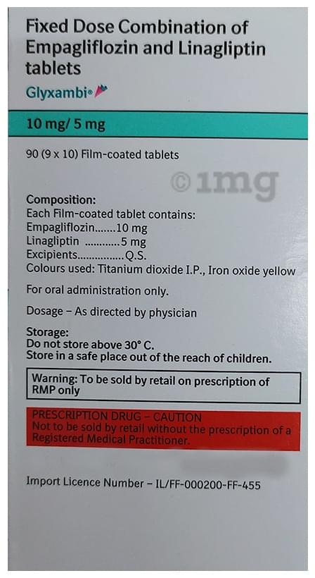Take this medicine in the dose and duration as advised by your doctor. Swallow it as a whole. Do not chew, crush or break it. Glyxambi 10mg/5mg Tablet may be taken with or without food, but it is better to take it at a fixed time.