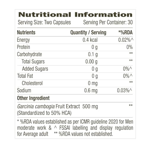 Each capsule supplies 500mg of Garcinia Cambogia Fruit Extract. Might Promote appetite control and helps reduce body weight and fat. It is an alternative herbal treatment for controlling obesity. Vegetarian Capsule