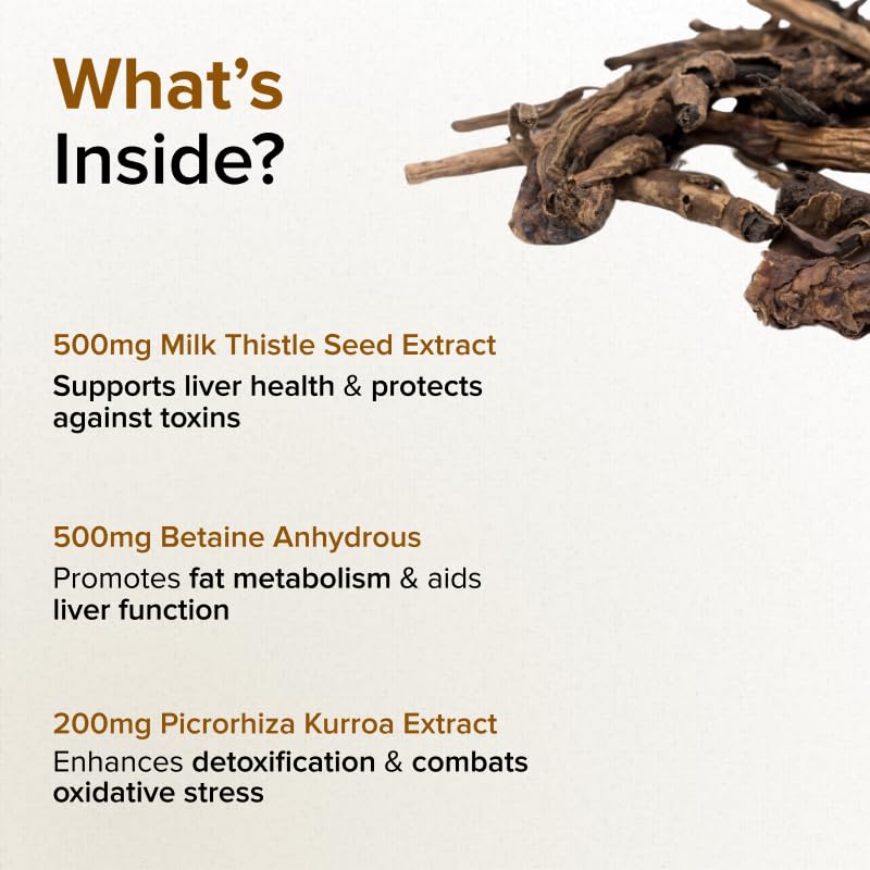 GNC Herbal Plus Liver Support | 500mg Milk Thistle, 500mg Betaine & 200mg Picrorhiza Extract | 60 Veg Capsules | Promotes Liver Health, Detox, & Metabolism | High Potency Formula