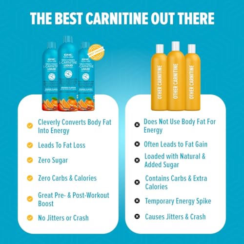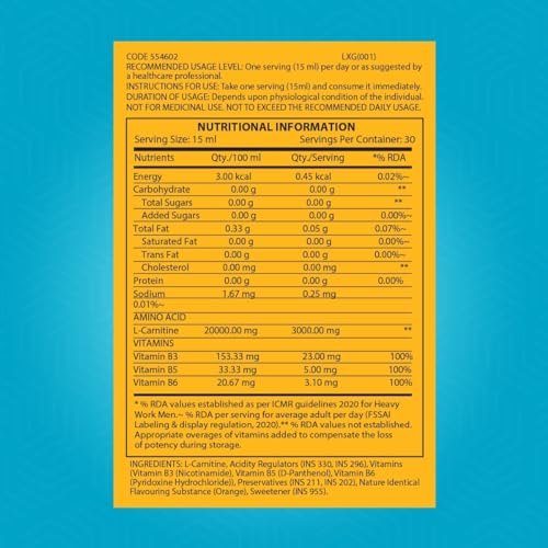 Want to build the perfect physique with more lean muscles and very less fat? Introducing GNC Total Lean Triple Strength L-Carnitine Liquid! Its triple-strength formula delivers 3000mg of L-Carnitine in a single serving for an incredible potency boost. Plus its liquid form gets absorbed easily as compared to the tablet ones for quicker results. GNCâs Liquid L-Carnitine demonstrates an extremely useful ability of generating energy from the stored fats in body. This energy provides ample fuel to level up your workout performance for faster bodybuilding success. In addition to L-Carnitine the formula also contains added Vitamin B3 B5 & B6 at 100% RDA capacity for converting the eaten food into energy which generates more fuel for use. In the process of metabolizing bad fats for energy this Liquid L-Carnitine delivers healthy weight-loss results by acting as a strong fat burner while leaving out your lean muscles to grow further. The strategic fat-burning & muscle-growing equation eventually gives you the perfect gym body. The L-Carnitine Liquid drives more oxygen flow towards your muscles by improving the blood supply. This promotes faster muscle recovery and growth. It also increases the antioxidant activity to shield your lean muscles from tissue damage which in turn prevents soreness and muscle fatigue. The formula gives a massive Nitric Oxide boost that increases blood circulation. This increased circulation improves muscle strength and stamina for letting you train tirelessly for longer. L-Carnitine shoots up your athletic capabilities by delaying exhaustion and pumping up endurance. GNCâs Liquid L-Carnitine hits awesome in the taste department too. It presents some amazing fruity flavours that your taste buds will love. All this flavourful experience comes at the cost of ZERO guilt as the formula has ZERO sugar carbs and calories.