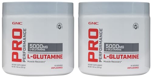 GNC Pro Performance L-Glutamine 5000 mg - 50 Servings - 0.55lbs, 250 gm (Unflavored) (Pack of 2)