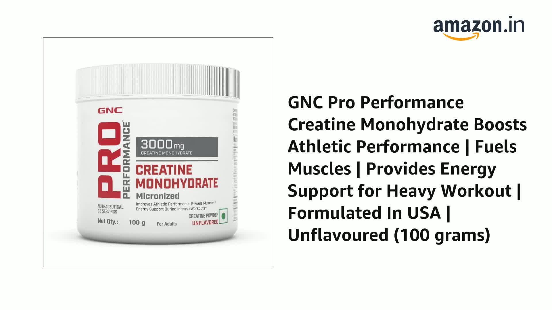 Get your performance curve up and rising with the GNC Pro Performance Creatine Monohydrate. It gets converted to Creatine Phosphate in the body to fuel skeletal muscles and enhance your exercise capacity. Moreover GNC's creatine supplement promotes faster energy production to energize you during heavy workout sessions. It improves your athletic performance and stamina remarkably. This formula hydrates your muscle cells to volumize your muscles and give them a hulking appearance. GNC's creatine powder is micronized and instantized to enable faster absorption in your body and get you energy-ready for the upcoming workout. In addition to athlete-centric benefits this creatine supplement also supports your nervous system and helps regulate your blood sugar. It is completely devoid of gluten sugar soy dairy and some artificial ingredients to suit your lifestyle preferences. GNC's creatine is unflavoured so you can mix it into your favorite drink without changing the taste.