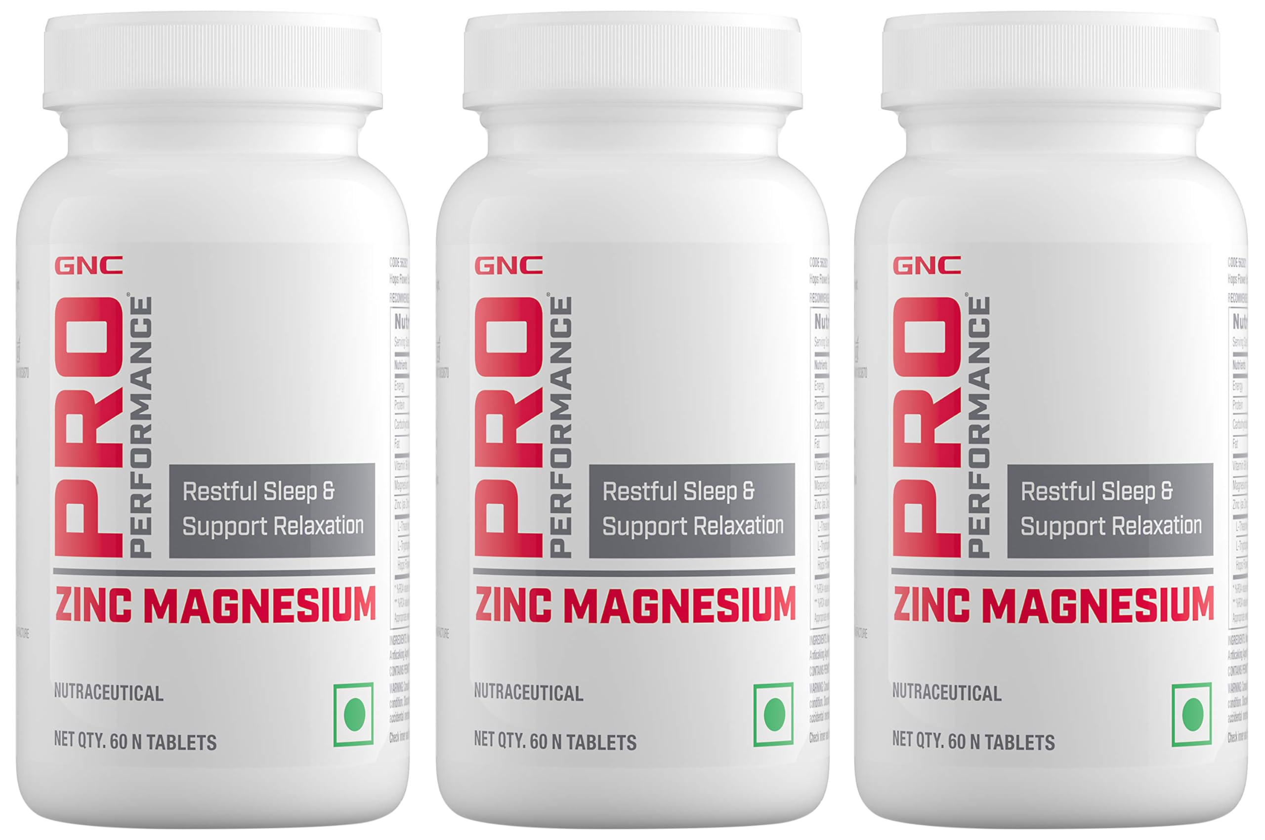 GNC Pro Performance Zinc Magnesium Amino (ZMA) Complex - For Restful Sleep & Relaxation - 60 Tablets (Pack of 3)