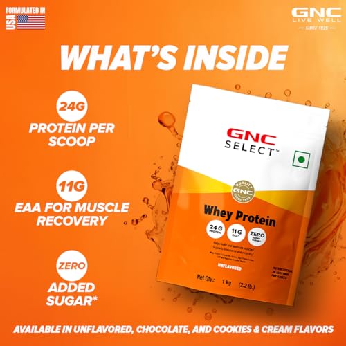 GNC Select Whey Protein is a supplement crafted to elevate your fitness journey while maintaining a reassuring affordability. Powered by whey protein it ignites muscle growth endurance and recovery ensuring each workout delivers maximum impact. Loaded with essential amino acids it fortifies muscle strength. It accelerates post-exercise recuperation aiding in the attainment of peak physical performance. Despite its premium quality its budget-friendly price tag makes it accessible to all fitness enthusiasts empowering them to achieve their goals without financial strain. Moreover enriched with digestive enzymes it facilitates smooth digestion and optimal nutrient absorption ensuring every gram of protein counts. Elevate your workouts and fuel your gains with GNC Select Whey Protein the epitome of performance and affordability in protein supplements.