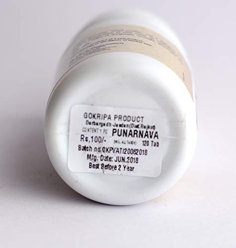 Punarnava Ghanavati helps maintain efficient kidney and urinary functions with its diuretic, laxative, stomachic, diaphoretic, anthelminthic anti-spasmodic and anti-inflammatory action. A systemic cleanser, promotes urination, and helps reduce swellings & water retention.Punarnava GhanavatiEffectively normalizes metabolism.Clears obstruction of doshas in liver and kidney and enhances diuresis.Thus helps in curing water retention.Digests Ama (metabolic toxin) in deep seated diseases.Good hepato protective and effective in liver disordersNo Synthetic chemicals are used in the preparation of this productIngredients : Punarnava extract, cow urine pills, Cow dung ash.Take 1 or 2 pills in the morning before food with luke warm water