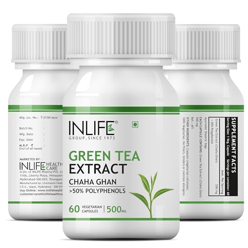 Inlife Green Tea Extract Vegetarian Capsules have green tea extract. The extract is mainly derived from the leaves of green tea. Green tea contains antioxidants in a great amount which are beneficial for human health. Chaha is another name of green tea. Each capsule of INLIFE Green Tea Extract Vegetarian Capsules contains 500mg of green tea extract. The extract is very helpful in maintaining glowing skin and keeps it healthy and fresh. The antioxidants present in the extract promotes metabolism which helps in weight management. A proper metabolism is necessary for a healthy body and hence this extract helps in getting it indirectly. It can also help you to have a strong immune system a healthy body with maintained healthy pressure in the blood and many other health benefits. It can help you in getting a healthy body and mind. Directions: 1 capsule daily after meal is the advised dosage of these capsules. Or as directed by health care professional. Store them in a cool and dry place as written on the label.