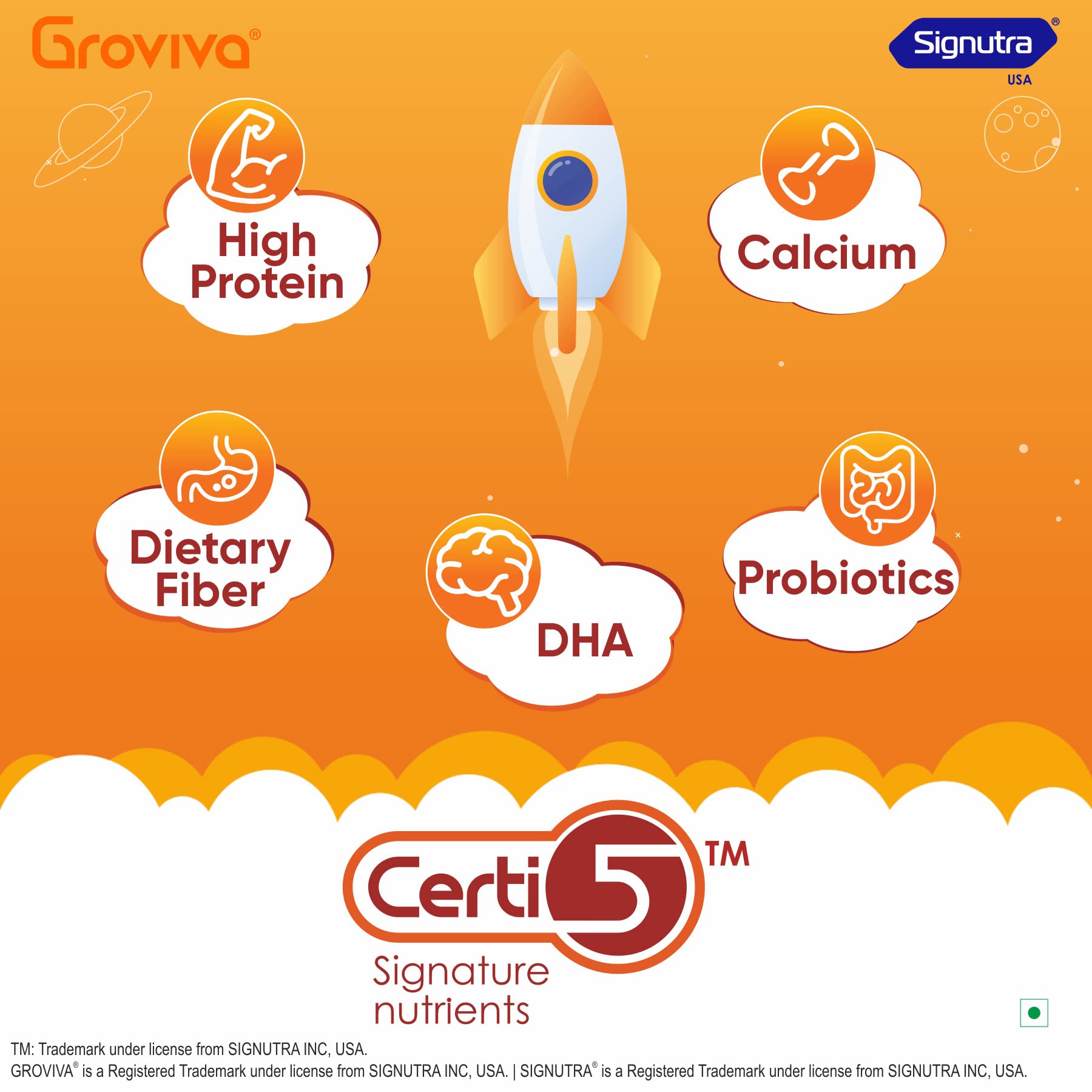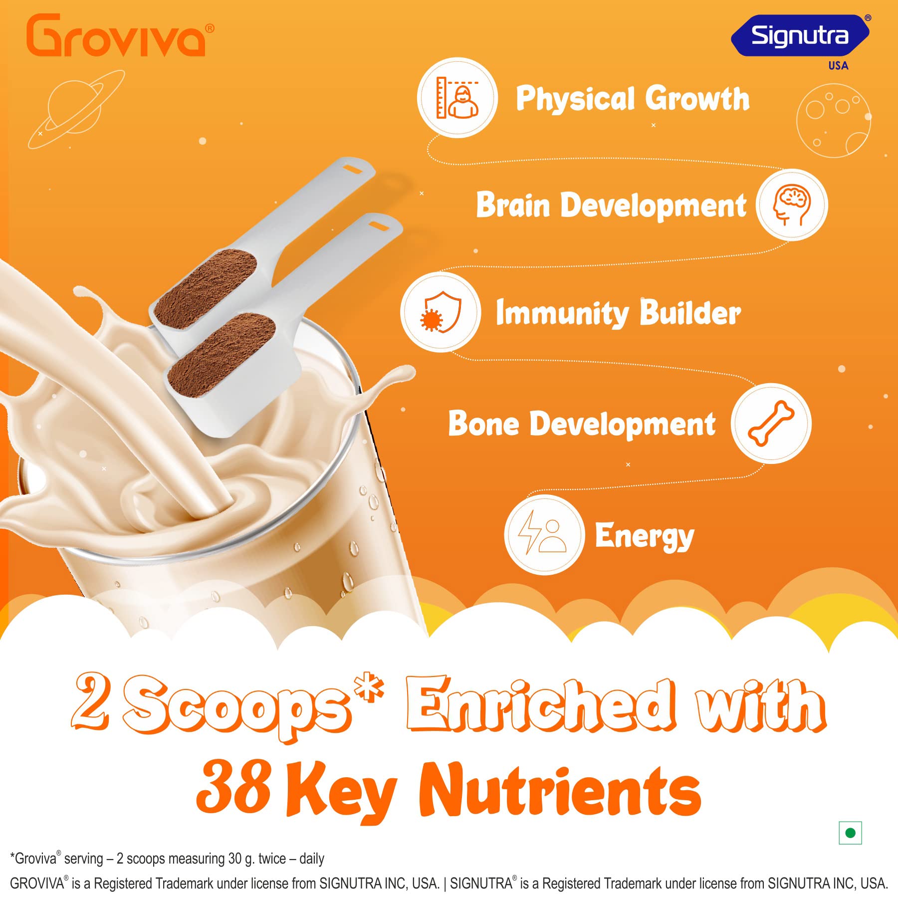 GrovivaTM is a customized wholesome child nutrition brand made as per ICMR guidelines . GrovivaTM is scientifically formulated with 38 key nutrients wherein Certi 5TM signature nutrients support the daily nutrition in .