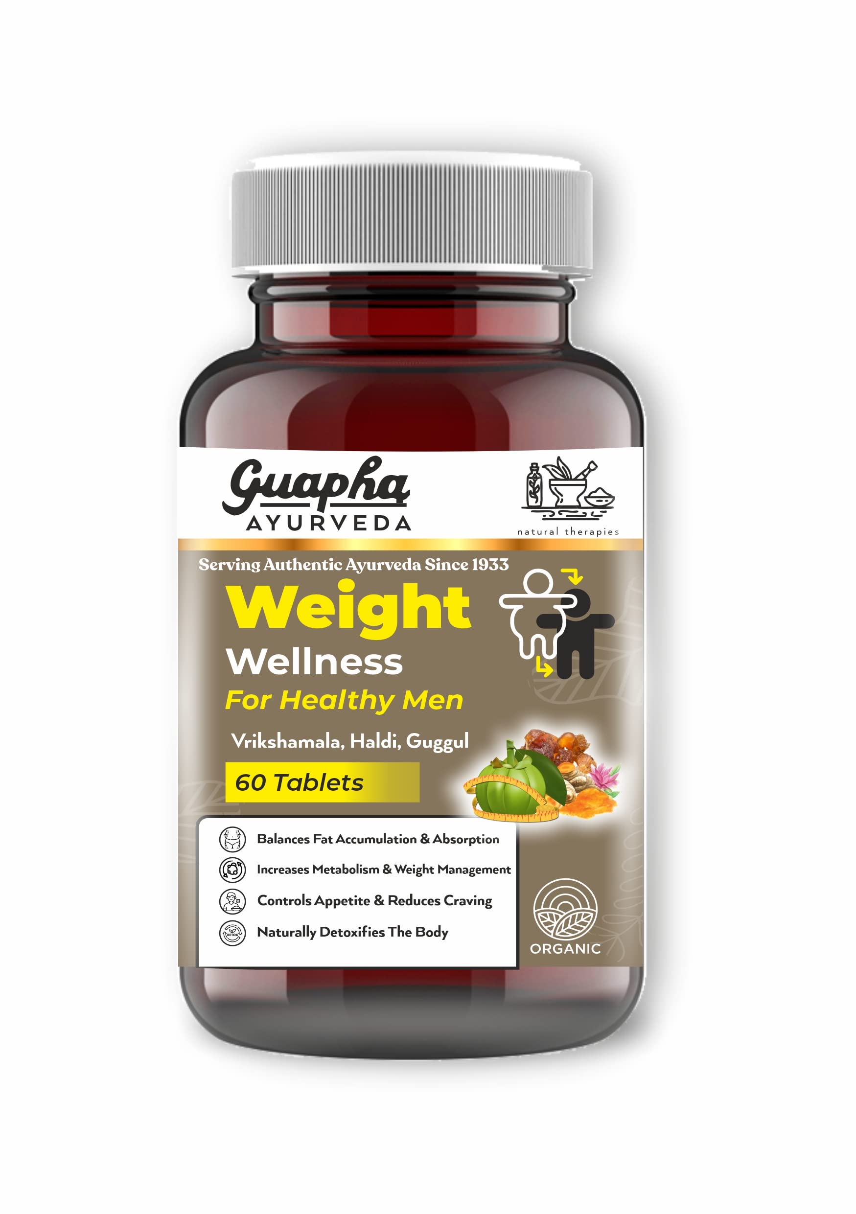 Guapha Ayurveda Weight Wellness | For Weight Management | With Herbal Extracts of Green Tea Green Coffee Curcumin 60 Tablets