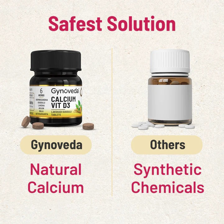 Gynoveda Calcium Vit D3 Tablets (Lakshadi Guggulu)Ingredients:LakshaHadjodBalaHow to use:Use as directed by the label or as suggested by the expert.Legal Disclaimer: Statements regarding dietary supplements have not been evaluated by the FDA.Note: Product images are for illustrative purposes only. Images/packaging/ labels may vary from time to time due to changes made by the manufacturer's manufacturing batch and location. The product description is f