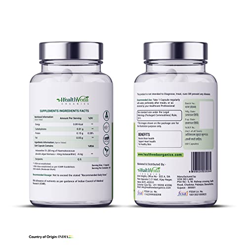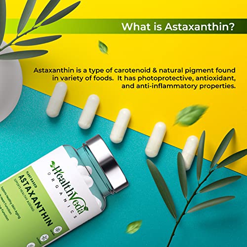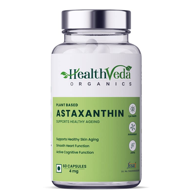 Health Veda Organics Plant Based Astaxanthin 4 mg Supplement I 60 Veg Caps. I For both Men & Women