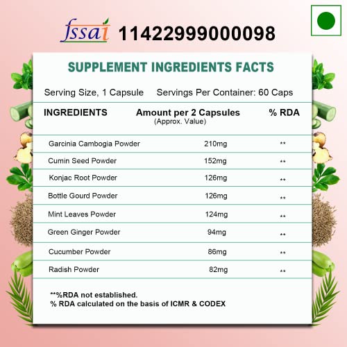 Health Veda Organics Plant Based Garcinia Cambogia Supplement 1000 mg | 60 Veg Caps.