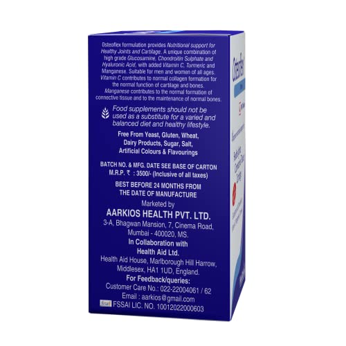HealthAid Osteoflex formulation provides nutritional support for healthy joints and cartilage. A unique combination of high grade Glucosamine and Chondroitin Sulphate with ed Vitamin C Turmeric and Manganese which will help maintain flexible joints strong