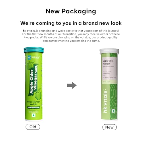 Sparkling health in a tablet- the fizzlicious way to consume apple cider vinegar! HealthKart HK Vitals Apple Cider Vinegar is Indiaâs first 750 mg apple cider vinegar tablet which is effervescent; Available in tasty green apple & watermelon flavours. HK Vitals Apple Cider Vinegar promotes weight management by keeping you full for longer. Apple cider vinegar tablet has natural acidic properties that help balance stomach acids reducing bloating and gas and improving digestion. Apple Cider Vinegar contains acetic acid which increases the activity of enzymes that improve our metabolism so our body burns calories faster. Apple Cider Vinegar is also enriched with Vitamin B6 & B12 to help fat mobilization & energy production while pomegranate extract helps boost immunity. It has no added sugar or preservatives & is 100% vegetarian. Get HealthKart HK Vitals ProteinUp Shaker Bottle of 600 ml capacity for easy mixability with apple cider vinegar effervescent tablets. To minimise messy spills it has a wide-mouth bottle cap that is secured with a tight screw on top
