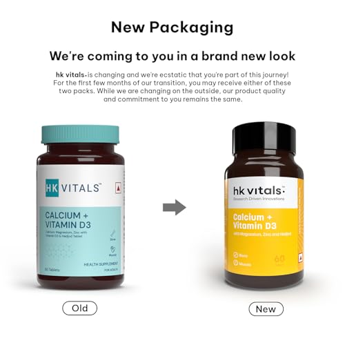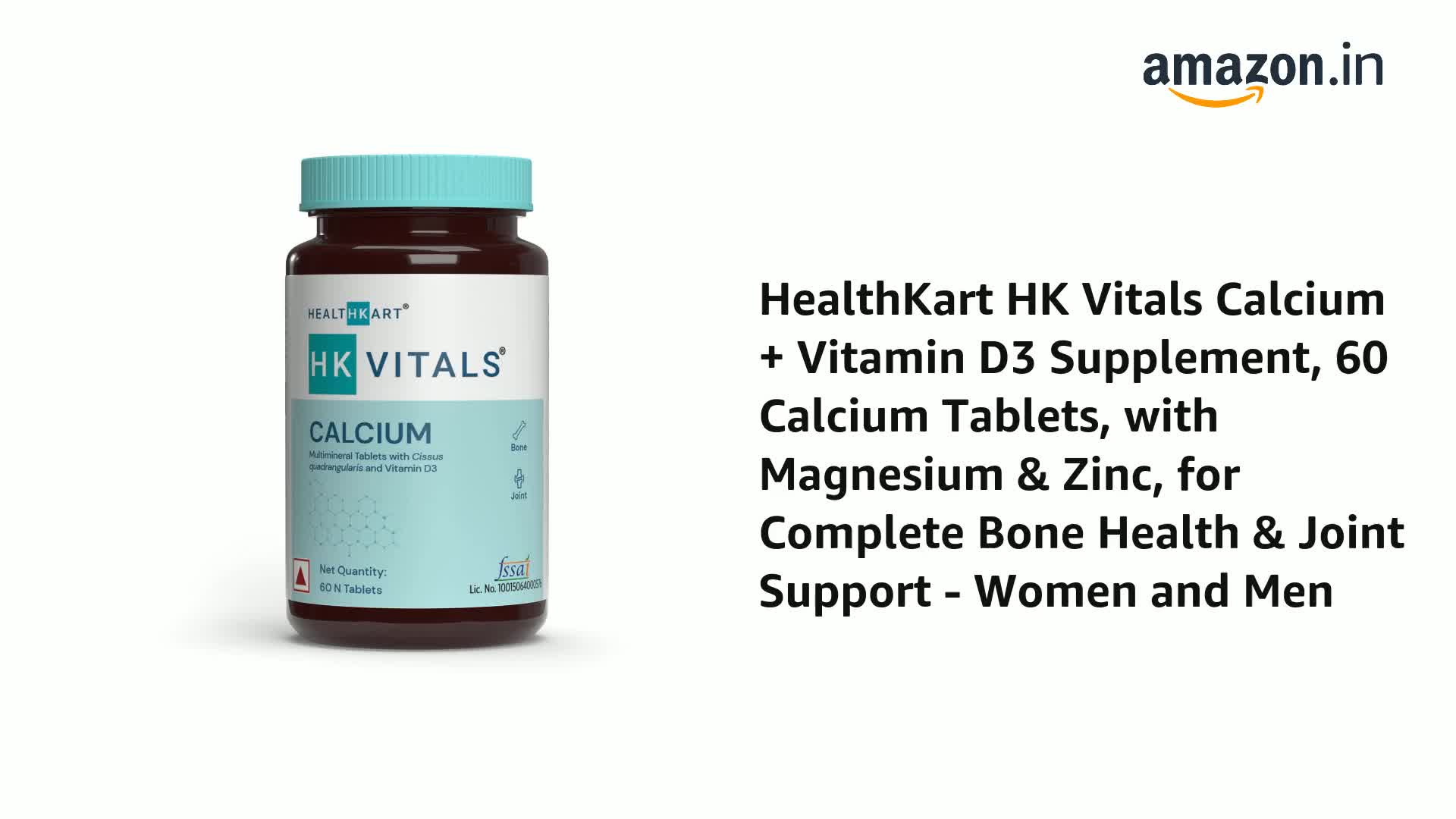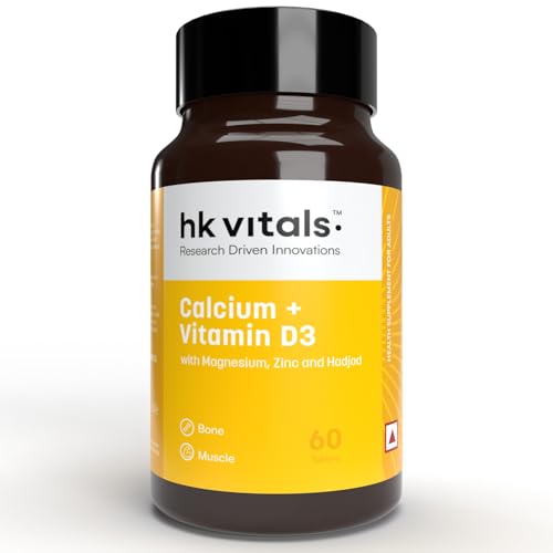 Calcium benefits the body in several ways most notably for maintaining strong bones & muscle strength. Diets often fall short of the recommended daily calcium intake particularly in individuals with higher needs such as older adults and postmenopausal women. Besides vegetarian diets contain lower amounts of calcium. Poor calcium and Vitamin D intake may lead to weak and porous bones (osteoporosis) that affect bone and joint health. To avoid calcium deficiency in the body calcium supplements are required for women and men. HK Vitals Calcium Supplement (from the house of HealthKart) is a comprehensive nutritional supplement of a highly bioavailable form of calcium (Calcium Citrate Malate) and Vitamin D3 with the goodness of magnesium zinc and hadjod that help maintain your bone and joints strong and healthy. Vitamin D3 and hadjod help in cartilage synthesis zinc assists in muscle protein synthesis and magnesium reduces the risk of bone fractures by increasing the bone mineral density. Take one calcium and Vitamin D3 tablet daily or as suggested by your dietician.