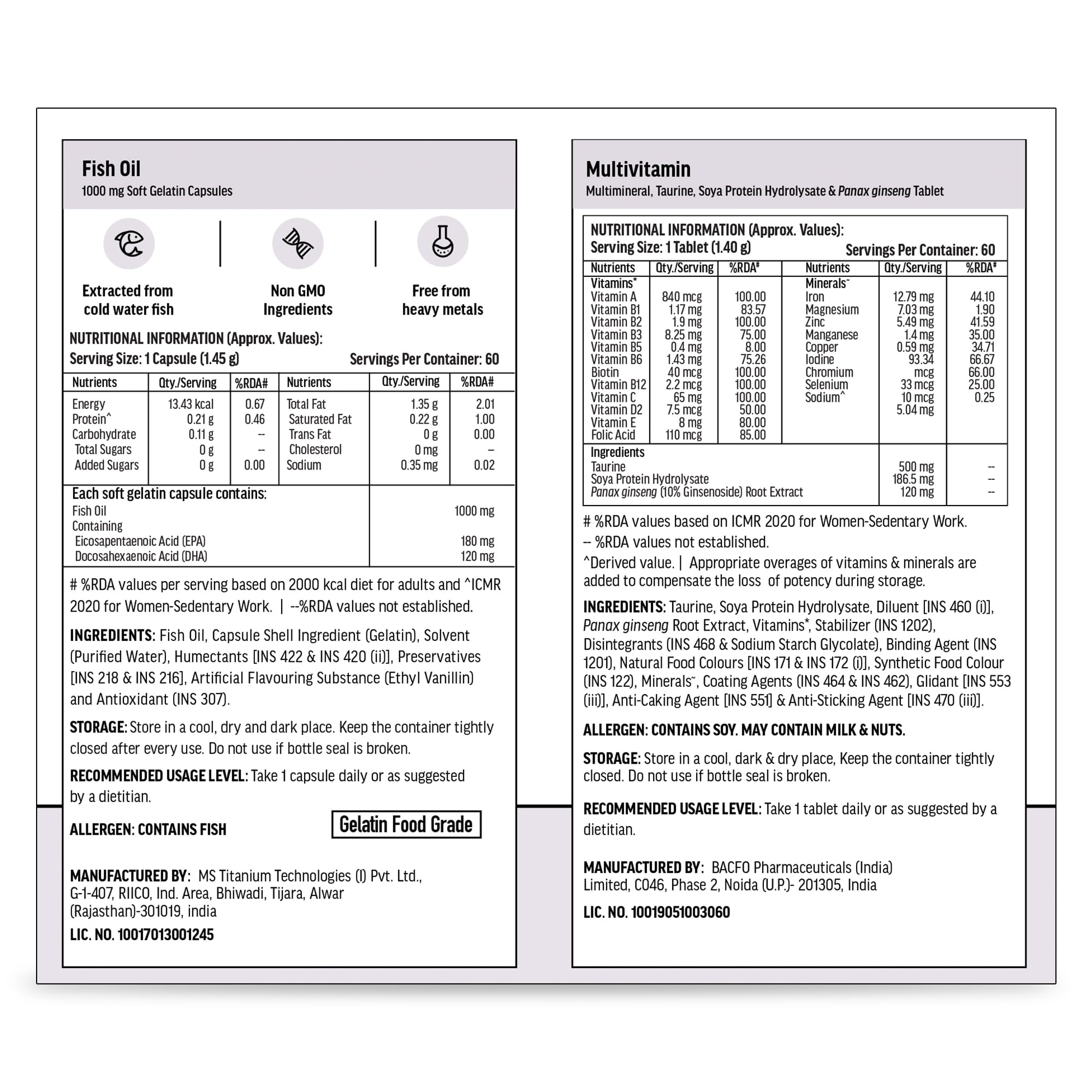 HealthKart hk vitals Fish Oil and Multivitamin (60 Tablets Each) Combo Pack | 1000mg Omega 3 with 180mg EPA & 120mg DHA | Enhances Energy Immunity & Joints Health