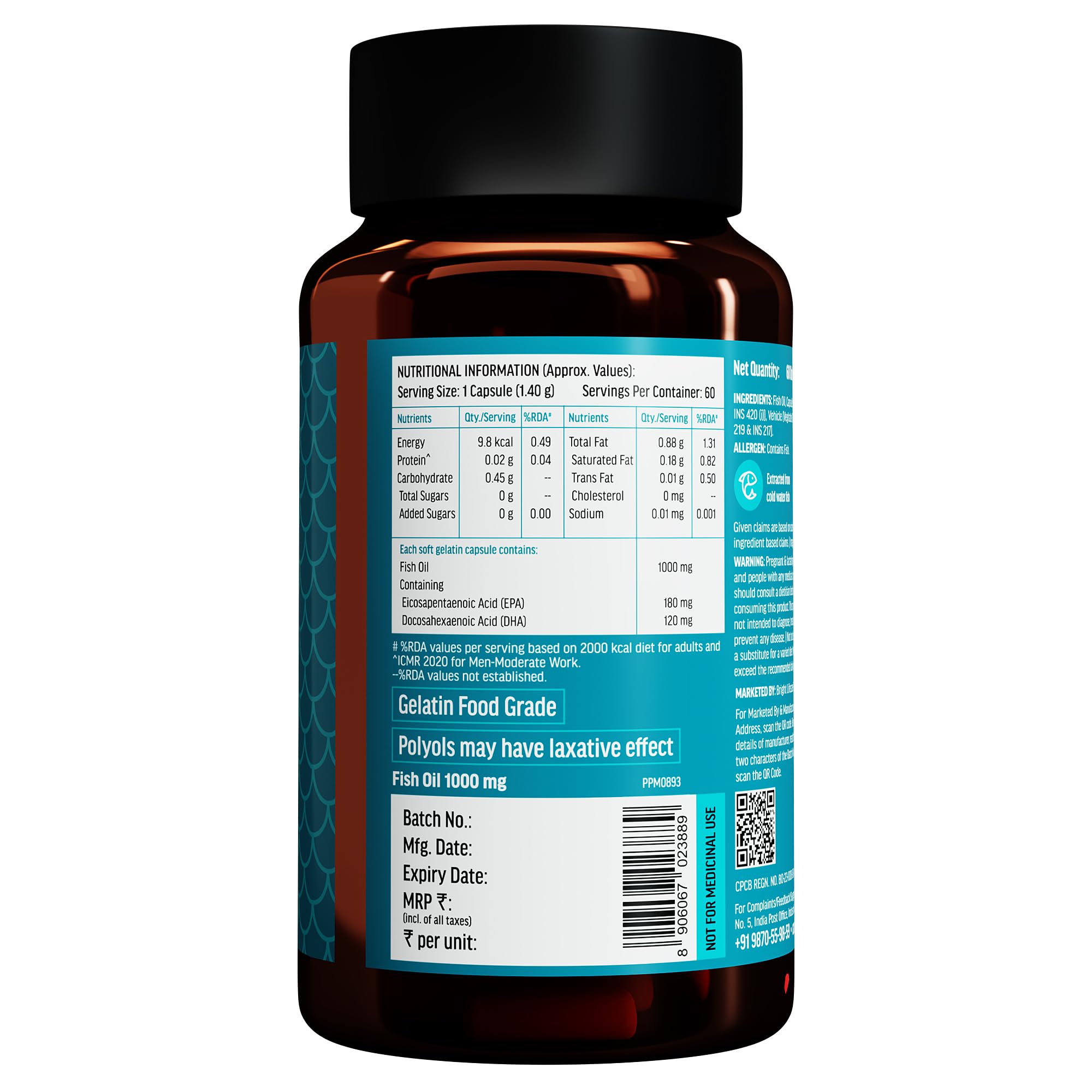HealthKart HK Vitals Fish Oil For Men And Women (60 Capsules) | 1000mg Omega 3 with 180mg EPA & 120mg DHA | For Brain Heart Eyes and Joints Health
