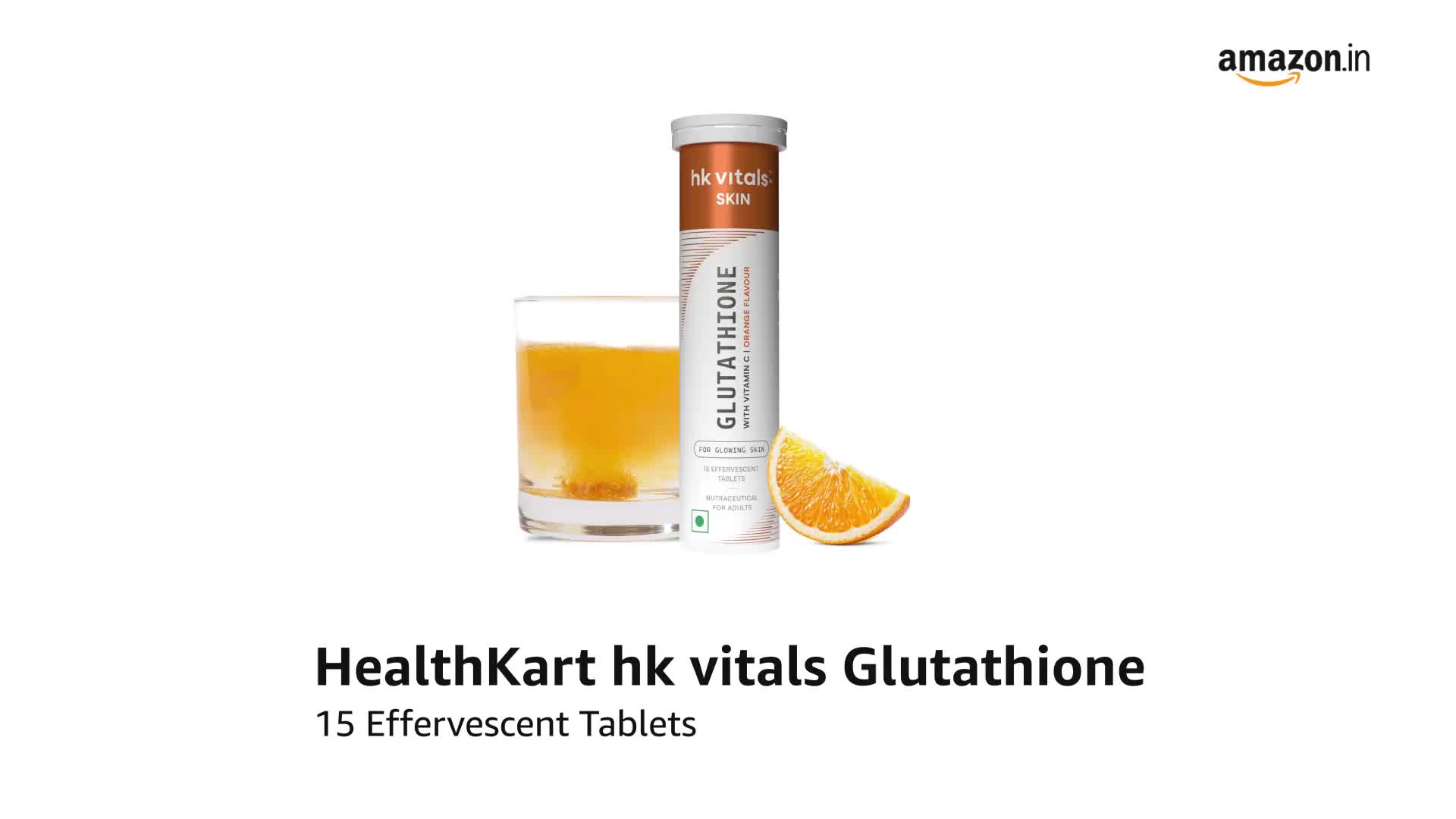 HealthKart hk vitals Glutathione - 15 Effervescent Tablets | L-Glutathione Tablets with Vitamin C & E, for Skin Glow & Hydration, No Added Sugar, Orange Flavour
