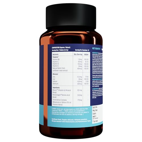 HealthKart HK Vitals Hair Multivitamin is a daily hair nutrition supplement that helps promote hair health and nourishment supports stronger hair & helps reduce hairfall. It is enriched with ingredients coming from sources of DHT Blockers & Omegas. It also has other good for hair vitamins and minerals like Biotin Iron Zinc & Folic Acid which support hair health. HealthKart HK Vitals Biotin Hair Gummies is a complete formula for your beauty needs. These biotin hair gummies include 100% RDA of biotin that helps boost hair growth and strengthens brittle nails. The blend of potent antioxidants like Zinc Vitamin E and Vitamin C helps combat oxidative stress on skin & hair. Additionally Vitamin A and Zinc have photo-protective qualities and protect the skin from UV-induced skin damage. Thus HK Vitals Biotin Gummies (from the house of HealthKart) is an all-rounder formula for hair skin and nails! Get these completely vegan and gluten free gummies with no added preservatives and artificial colours.