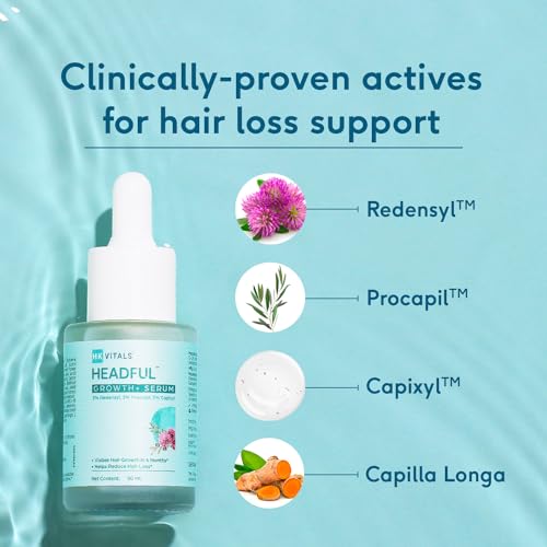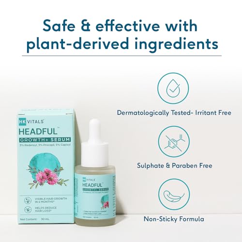 HAIR GROWTH SERUM: HK Vitals by HealthKart Headful Growth+ Serum is an advanced formulation with a blend of 4 clinically proven actives with plant-derived substances to support hair loss by activating hair regrowth. Use consistently for 4 months to witnes