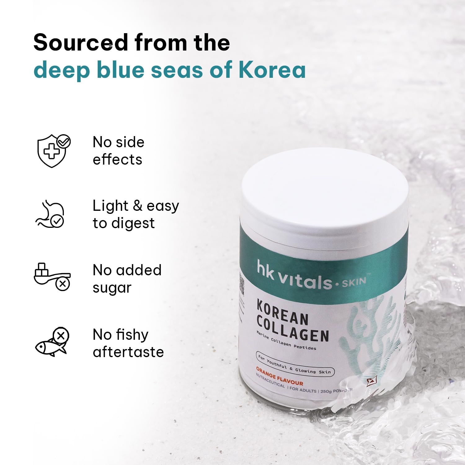 HealthKart Hk Vitals Korean Marine Collagen Supplement (Orange250 G)|Supplement For Women & Men|Promotes Healthy SkinHair & NailsPowder1 Count25 Servings