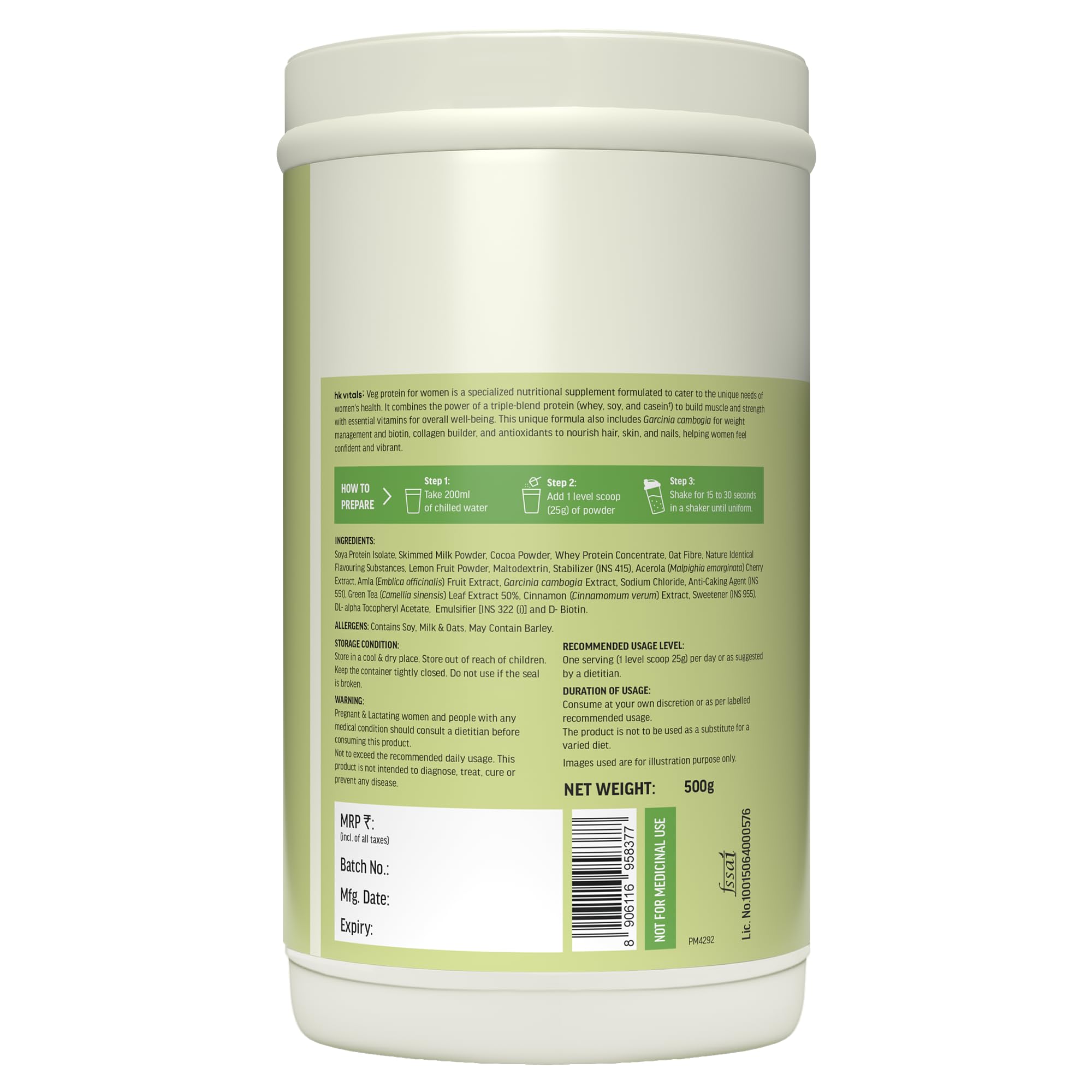 HealthKart hk vitals Protein For Women (Chocolate 500g) | Vegetarian Protein with Soy Whey Collagen Builder Blend Biotin Garcinia & Green Tea | For Strength & Beauty