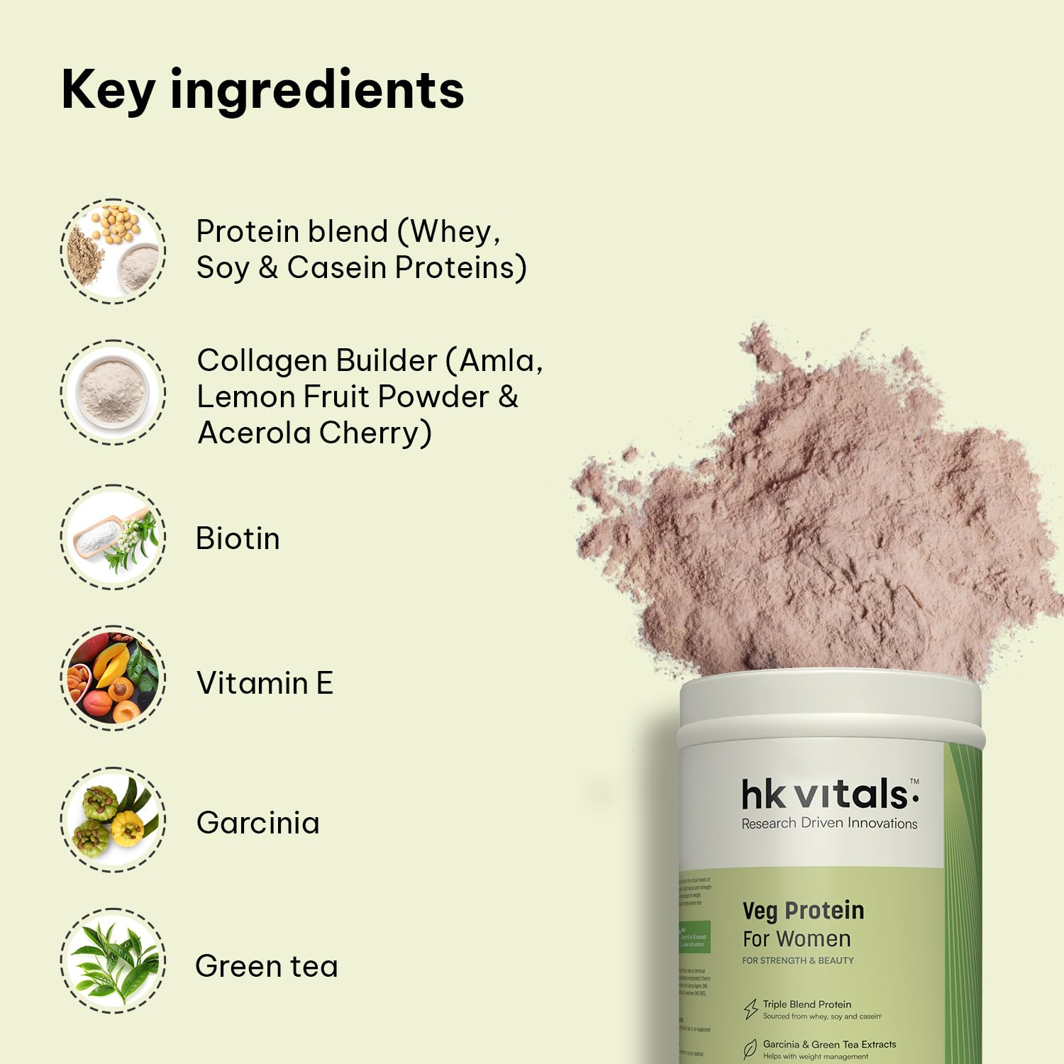HomeHealth & PersonalDiet & NutritionHealth SupplementsHealthKart hk vitals Protein For Women (Chocolate 500g) | Vegetarian Protein with Soy Whey Collagen Builder Blend Biotin Garcinia & Green Tea | For Strength & Beauty
