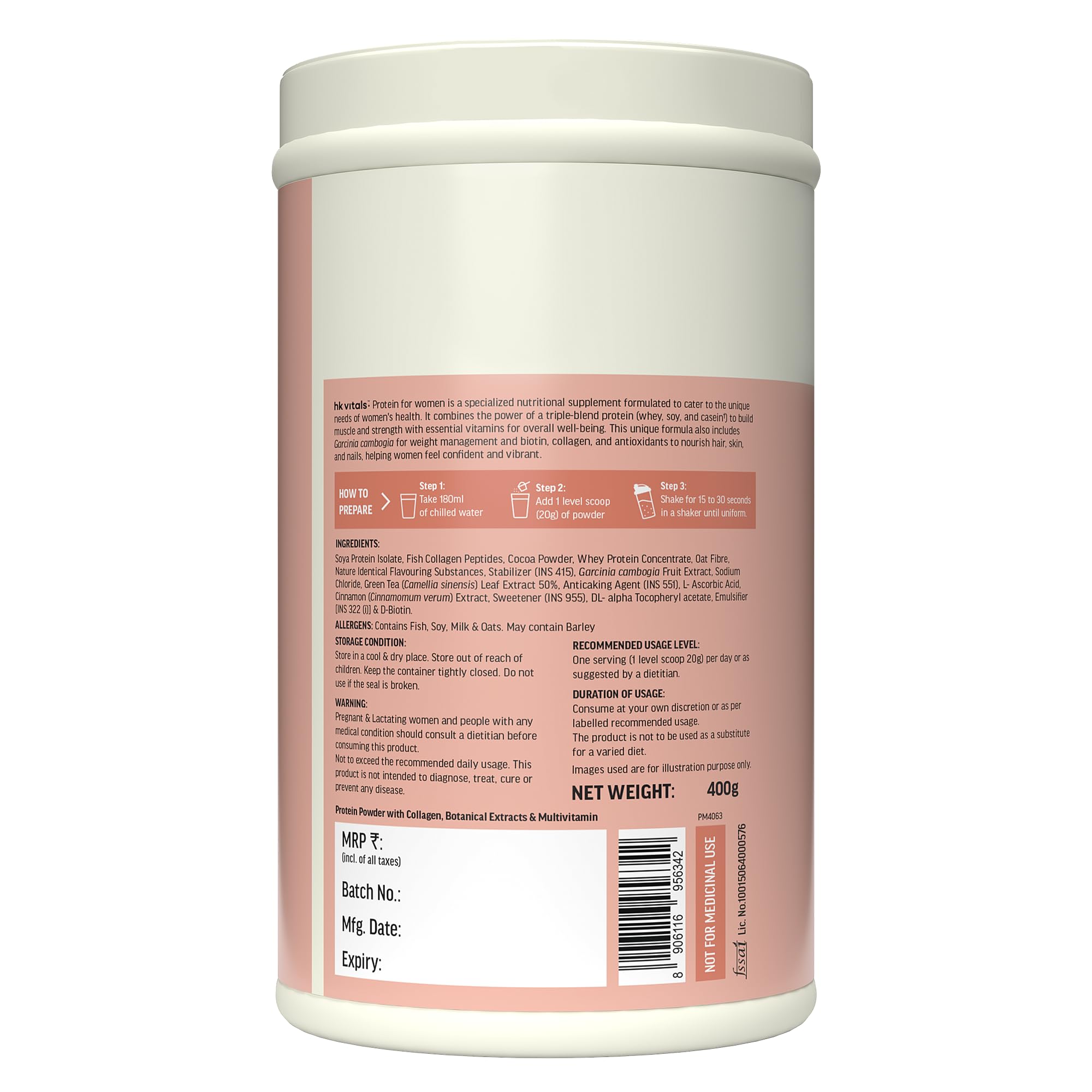 • FSSAI CERTIFIED: HealthKart HK Vitals supplements are manufactured in a FSSAI certified facility that is GMP certified.
