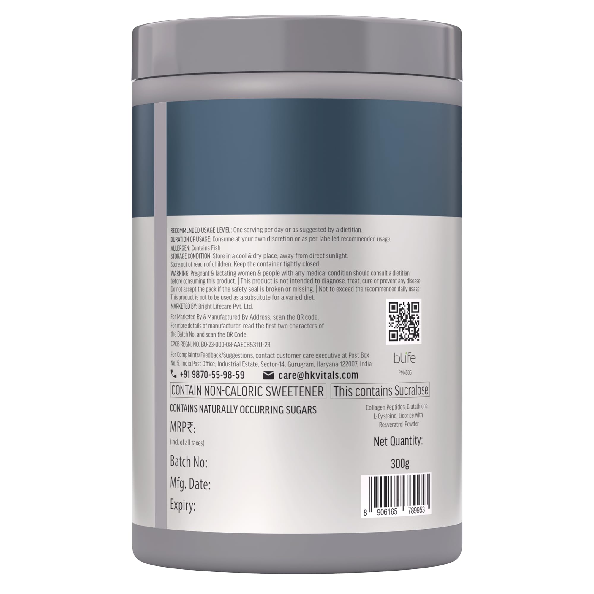HealthKart hk vitals Skin Radiance Pro Marine Collagen Supplement Powder (Orange 300g) | Collagen Peptides with Glutathione Biotin Vitamin C E