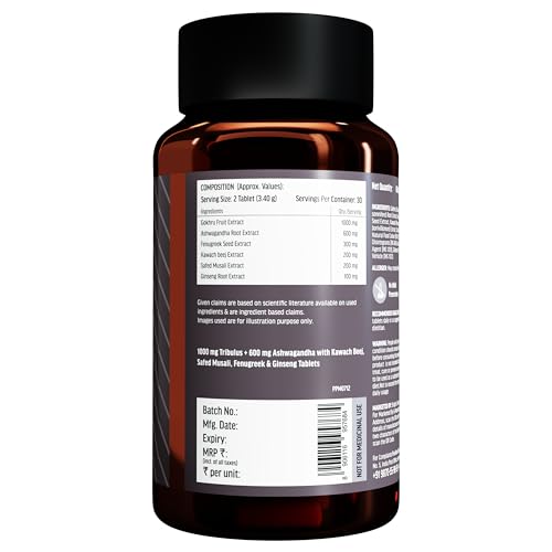 IMPROVES MUSCLE MASS & STRENGTH: Both ashwagandha and safed musli enhance muscle protein synthesis and overall muscle strength. They also support the t-levels in the body