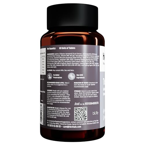 PACKED WITH NATURAL HERBS: HealthKart HK Vitals Testo Bold is enriched with 1000 mg Tribulus 600 mg Ashwagandha and other ingredients like Kawach Beej Safed Musli Fenugreek and Ginseng