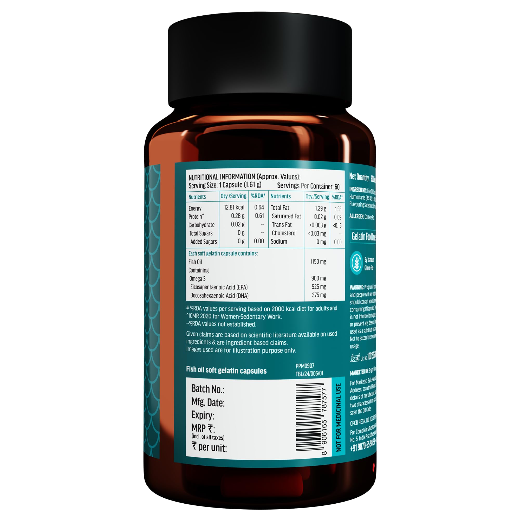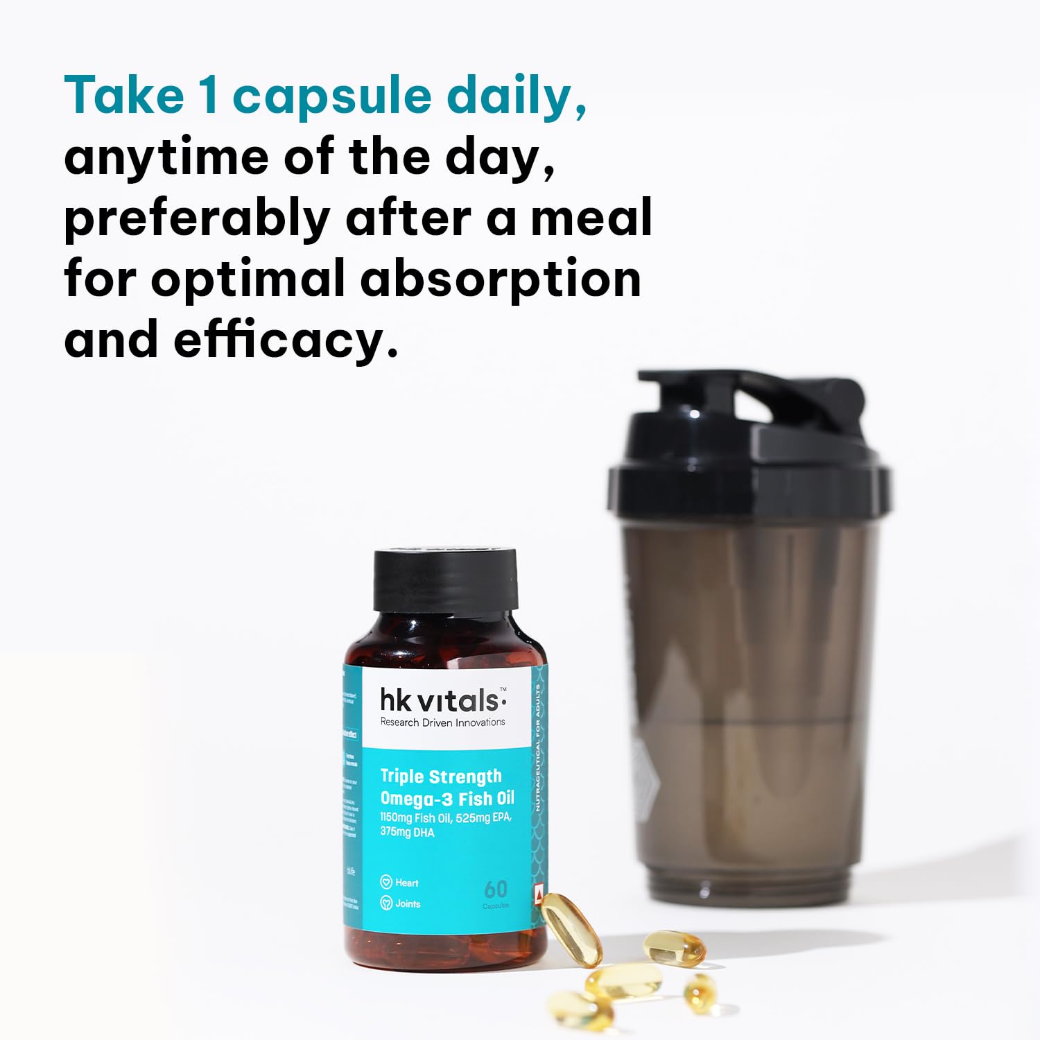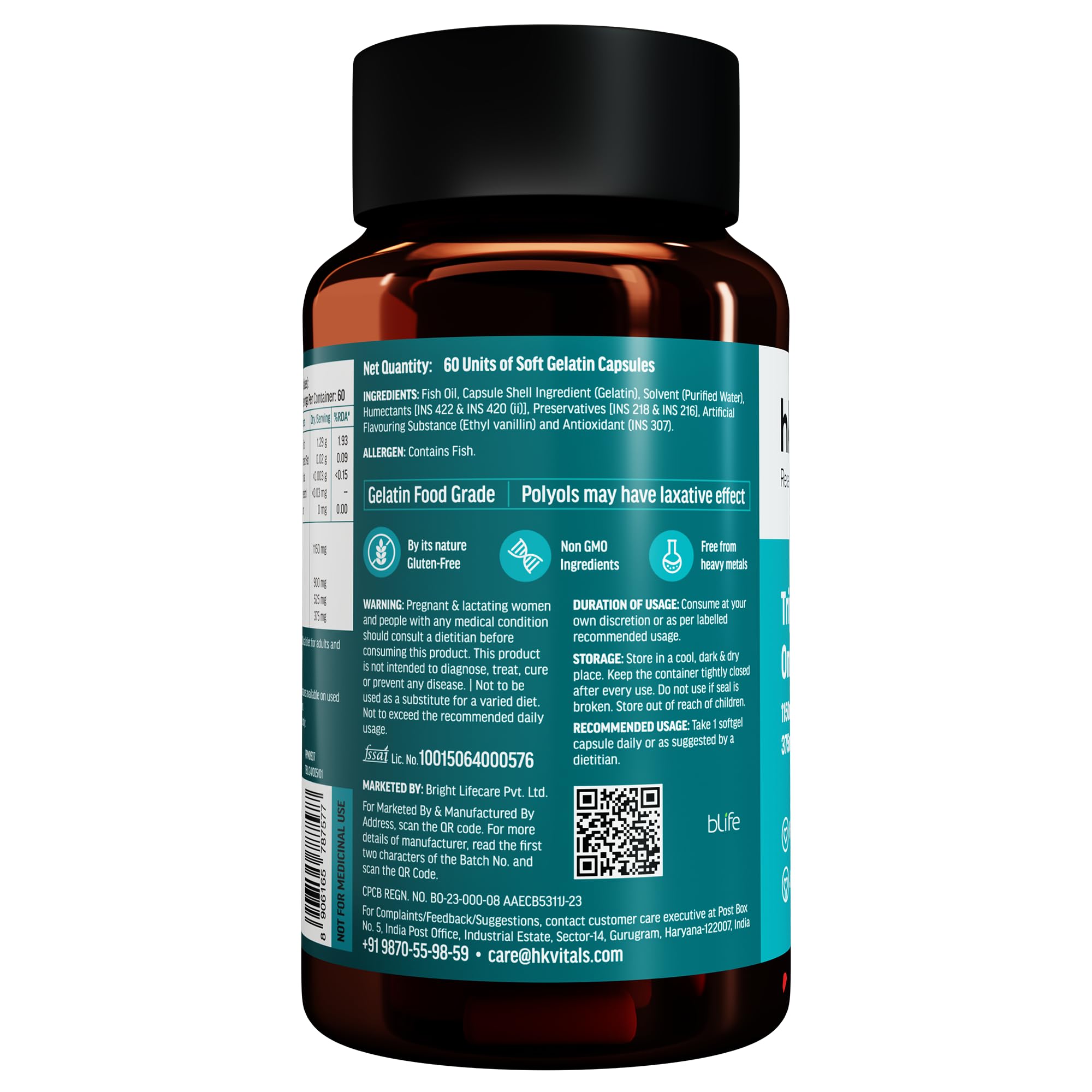 HealthKart hk vitals Triple Strength Omega-3 Fish Oil Supplement (60 Capsules) | For Men and Women 525mg EPA & 375mg DHA | For Healthy Heart & Joints