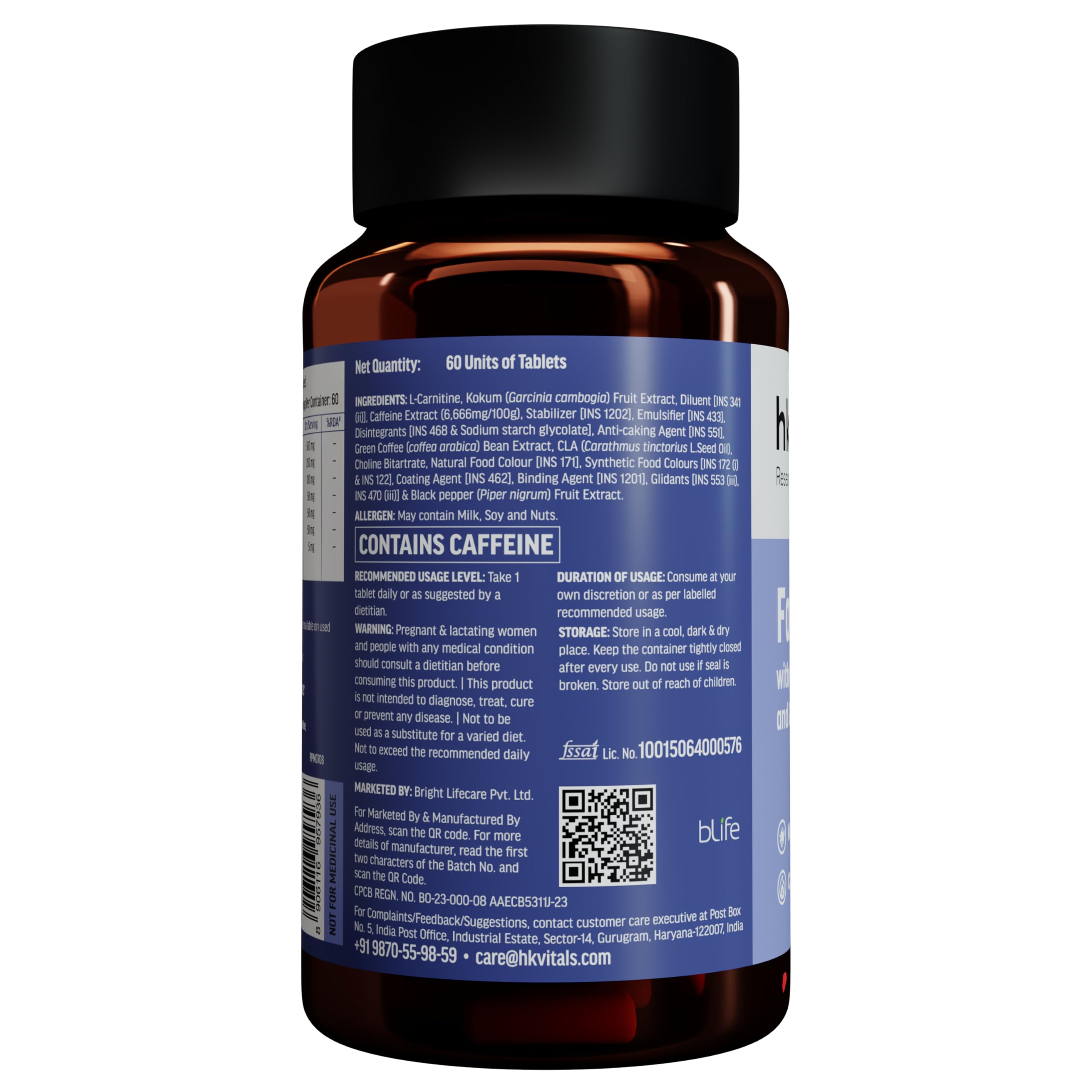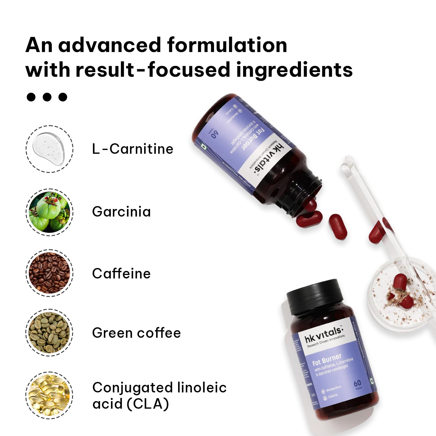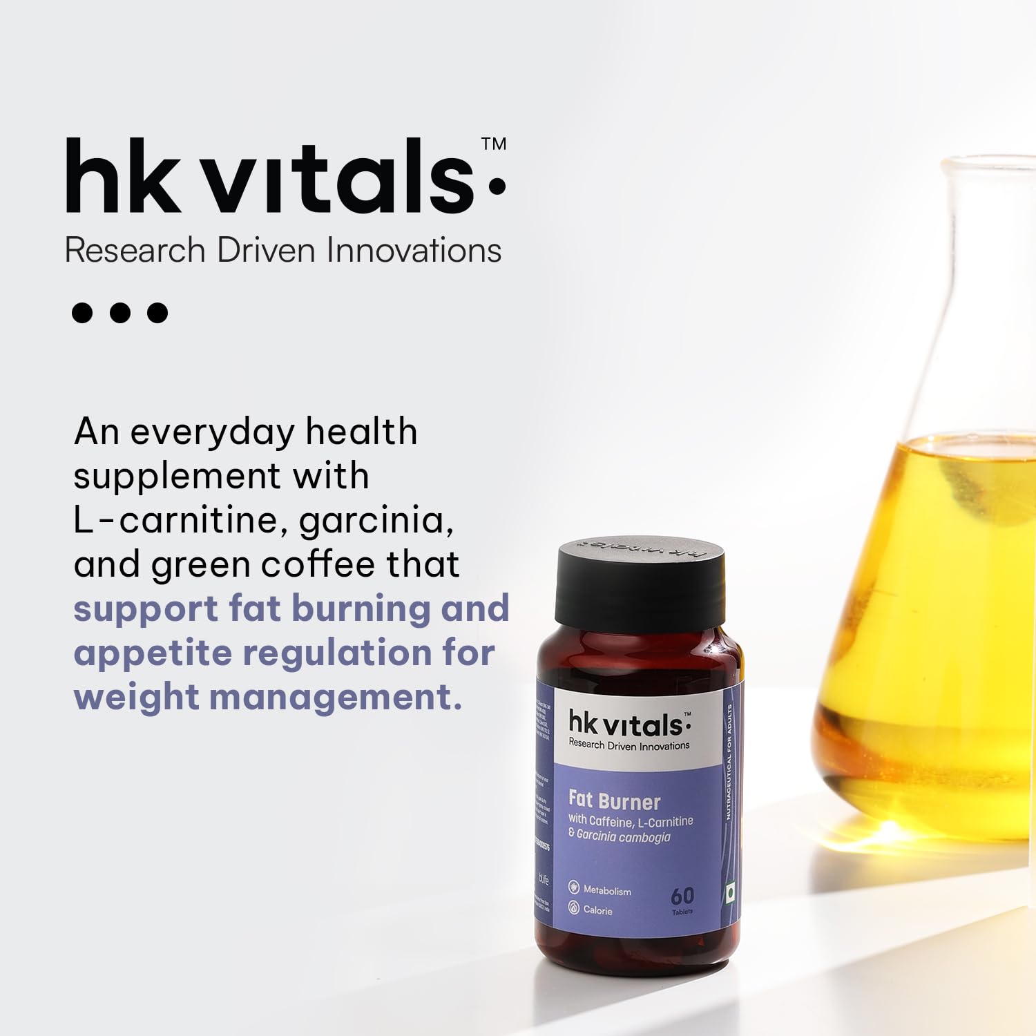 HealthKart hk vitals Fat Burner (60 Tablets) | With L-Carnitine Garcinia Cambogia & Caffeine | Supports Weight Management & Fuels Metabolism