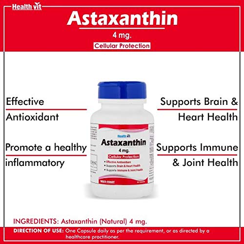 Astaxanthin is one of the most powerful antioxidants found in nature. Astaxanthin may promote a healthy inflammatory response support skin during exposure to sunlight and supports joint and eye health. Being an antioxidant it naturally reduces free radicals in the body. Besides that it also significantly reduces the oxidative load in the body by protecting the cells against oxidation