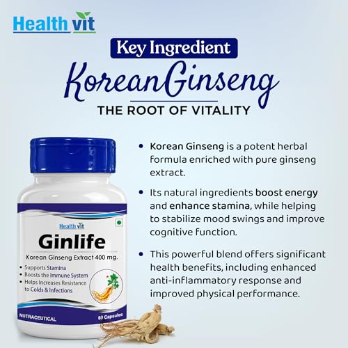 Benefits of Healthvit ginlife ginseng extract 500 mg 60 capsules promotes stamina boost the immune system increase resistance to cold. Ginseng is a nutritious herb that has been used for energy tonic as well as to treat variety of health problems.