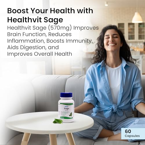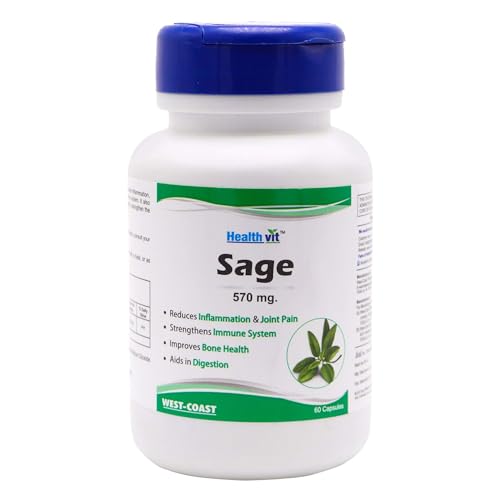 Healthvit sage 570 mg 60 capsules. Sage has the ability to improve brain function lower inflammation prevent chronic diseases and boost the immune system. It also helps regulate digestion alleviate skin conditions and strengthen the bones. 1. Reduces inflammation and joint pain. 2. Strengthens immune system. 3. Improves bone health. 4. Aids in digestion. Ingredients: organic sage (salvia officinalis) (leaf) 570 mg. Suggested use: take 2 capsules twice a day with a meal or as directed by healthcare practitioner.