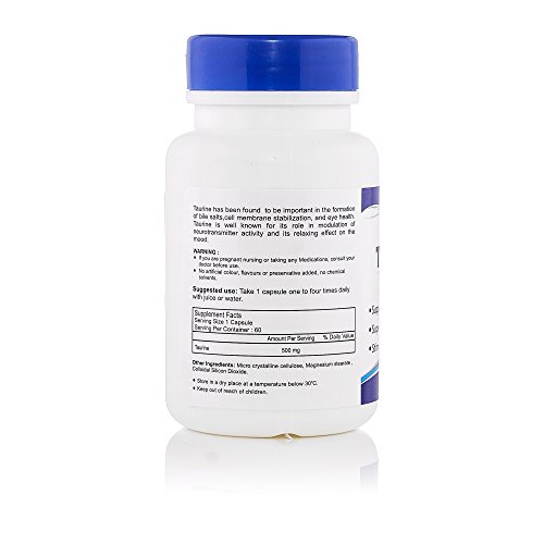 Benefits of Healthvit taurine 500mg 60 capsules. Support energy protection super antioxidant stimulate the immune system. Taurine has been found to be important in the formation of bile salts and eye health.