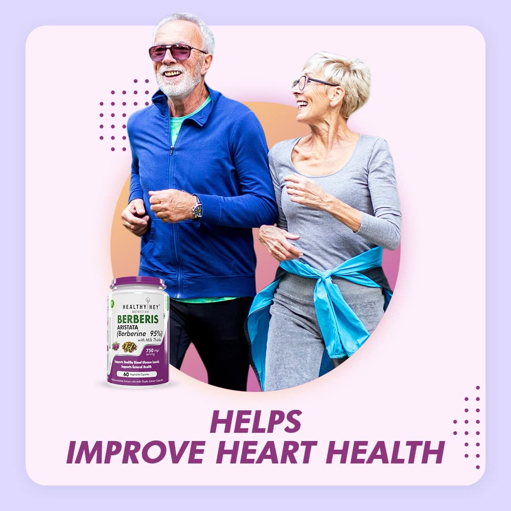 HealthyHey Nutrition Berberis Berberine 95% with Milk Thistle Vegetable Capsules 60 Count