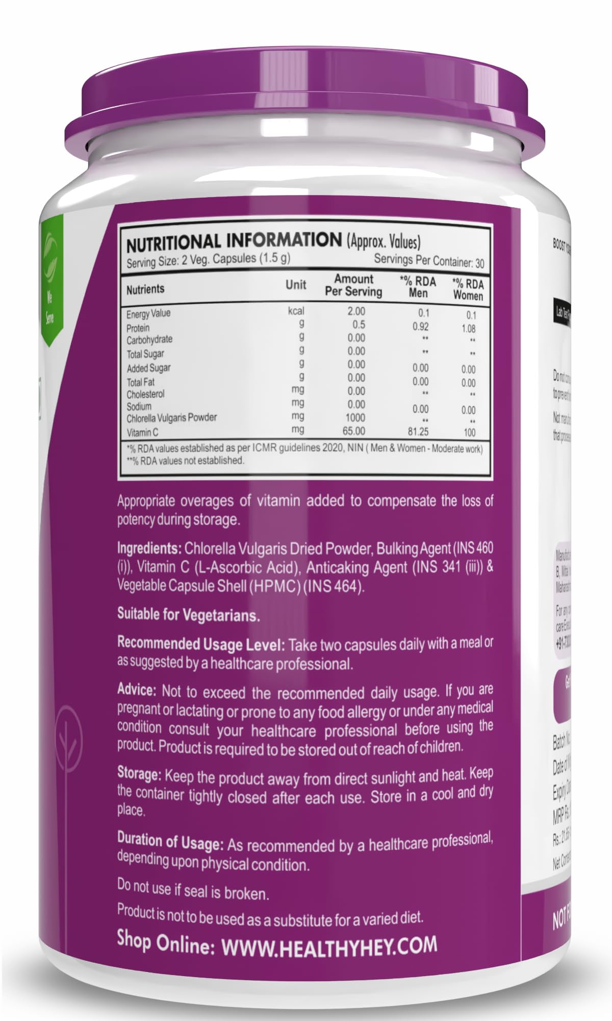 HealthyHey Nutrition Chlorella Vulgaris - 1065mg per serving - 60 Vegetable Capsules