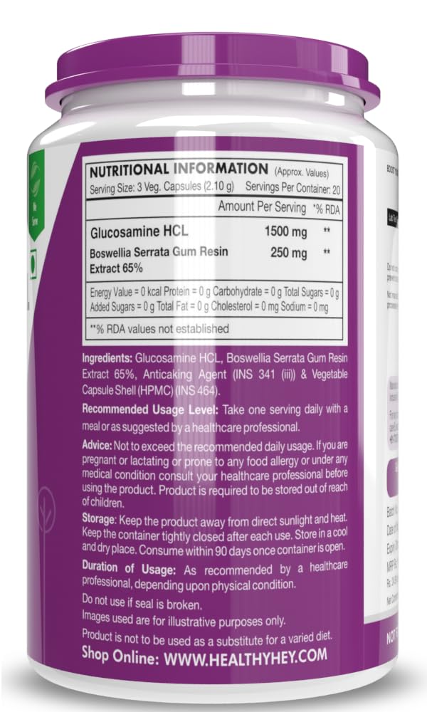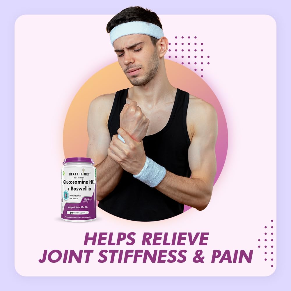HealthyHey Nutrition Glucosamine HCL + Boswellia - Support Joint Health -60 capsules (Pack of 1)