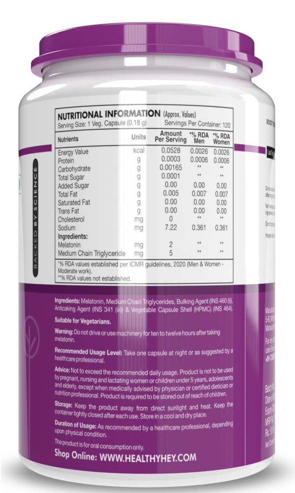 HealthyHey Nutrition Melatonin 2mg - 120 vegetable capsules - Promotes Sleep and Relaxation