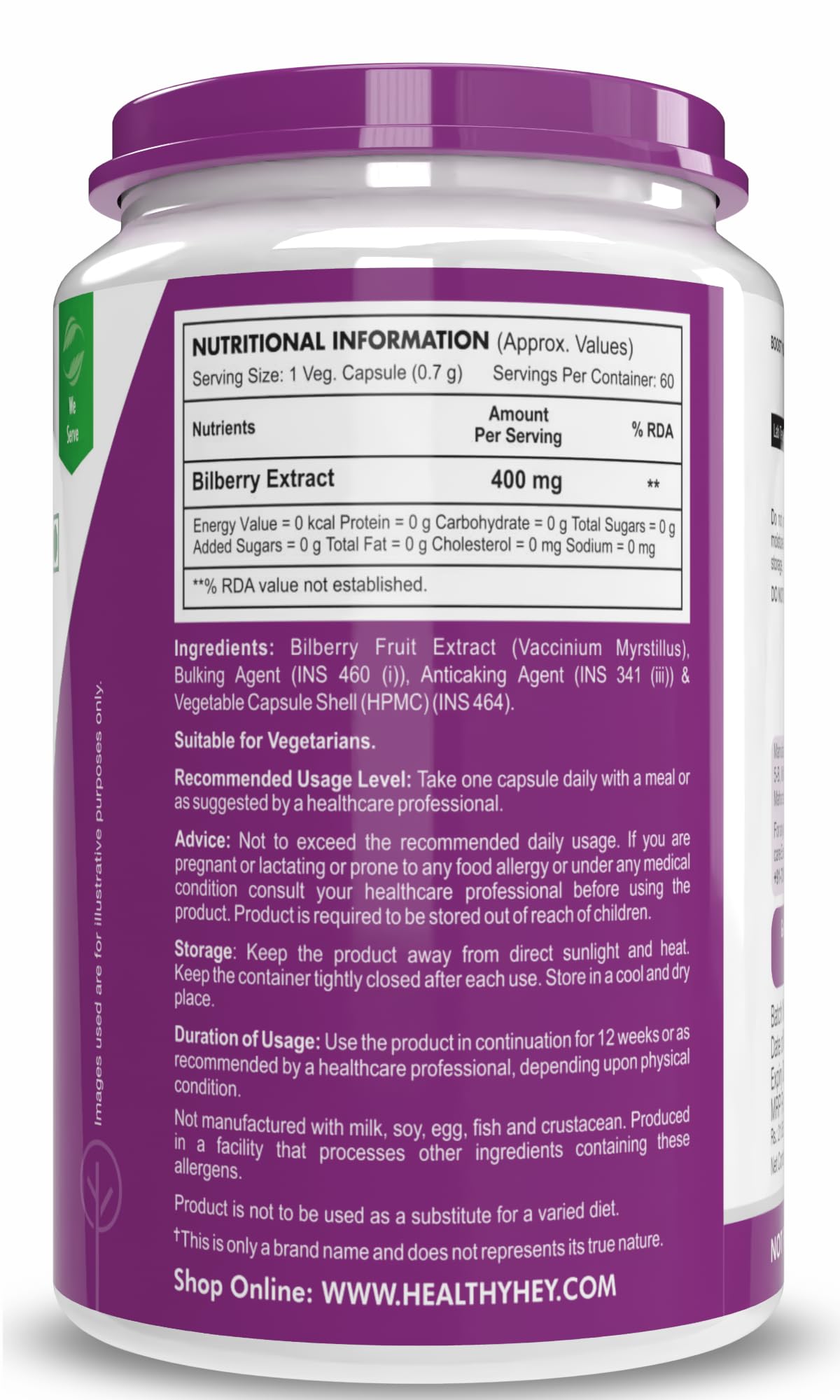 HealthyHey Nutrition Natural Bilberry Extract 60 vegetable capsules