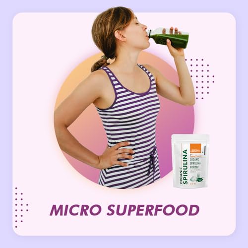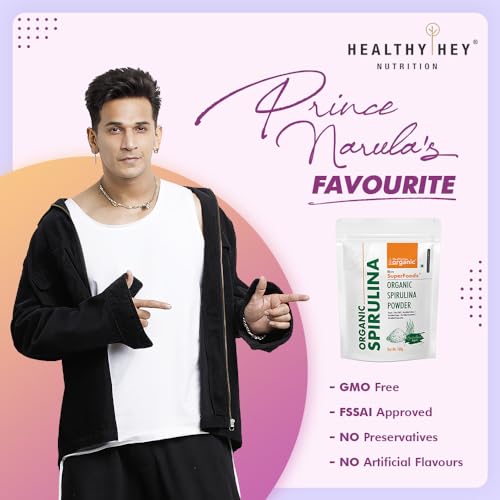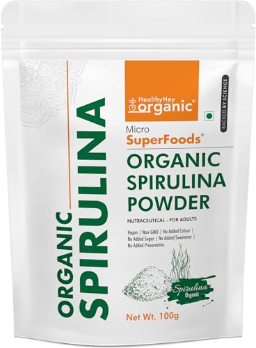 % ; Nothing Else! Completely Pure Natural and Health Friendly Organic Non-GMO Gluten & Soy Free. Each serving is 3g and includes 33 servings per bag. 6% ; HealthyHey Organic Spirulina Powder is of excellent quality and includes just the best 100% pure spirulina ingredient we could find. Abundant in protein holding all the essential amino acids. HEALTH BENEFITS; Spirulina supports cholesterol health allergic health support blood pressure increase power out and several other proven health benefits.
