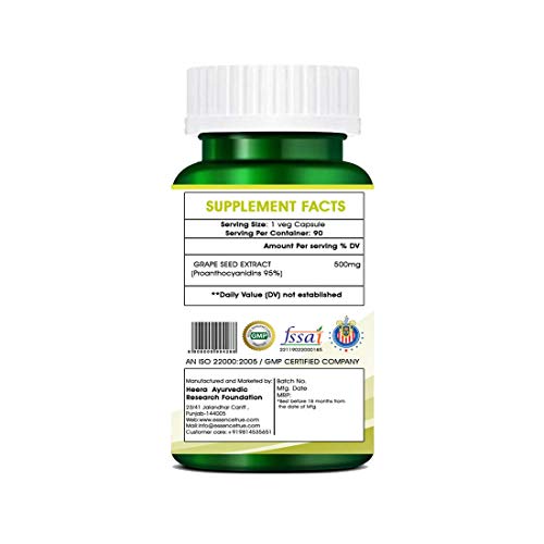 Heera Ayurvedic Research Foundation Grape Seed Extract 95% | 90 PCS. Veg Capsule (500 mg)