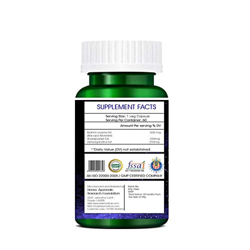 Heera Ayurvedic Research Foundation Pro Brain with Brahmi Shankpuspi & Ashwagandha 60 PCS. Veg Capsule (1000 mg)