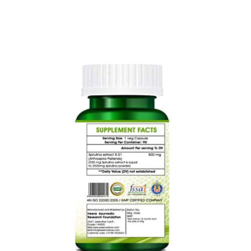 Heera Ayurvedic Research Foundation Spirulina Superfood 90 PCS Veg Capsule (500 mg) (Arthospira Platensis 5:01)