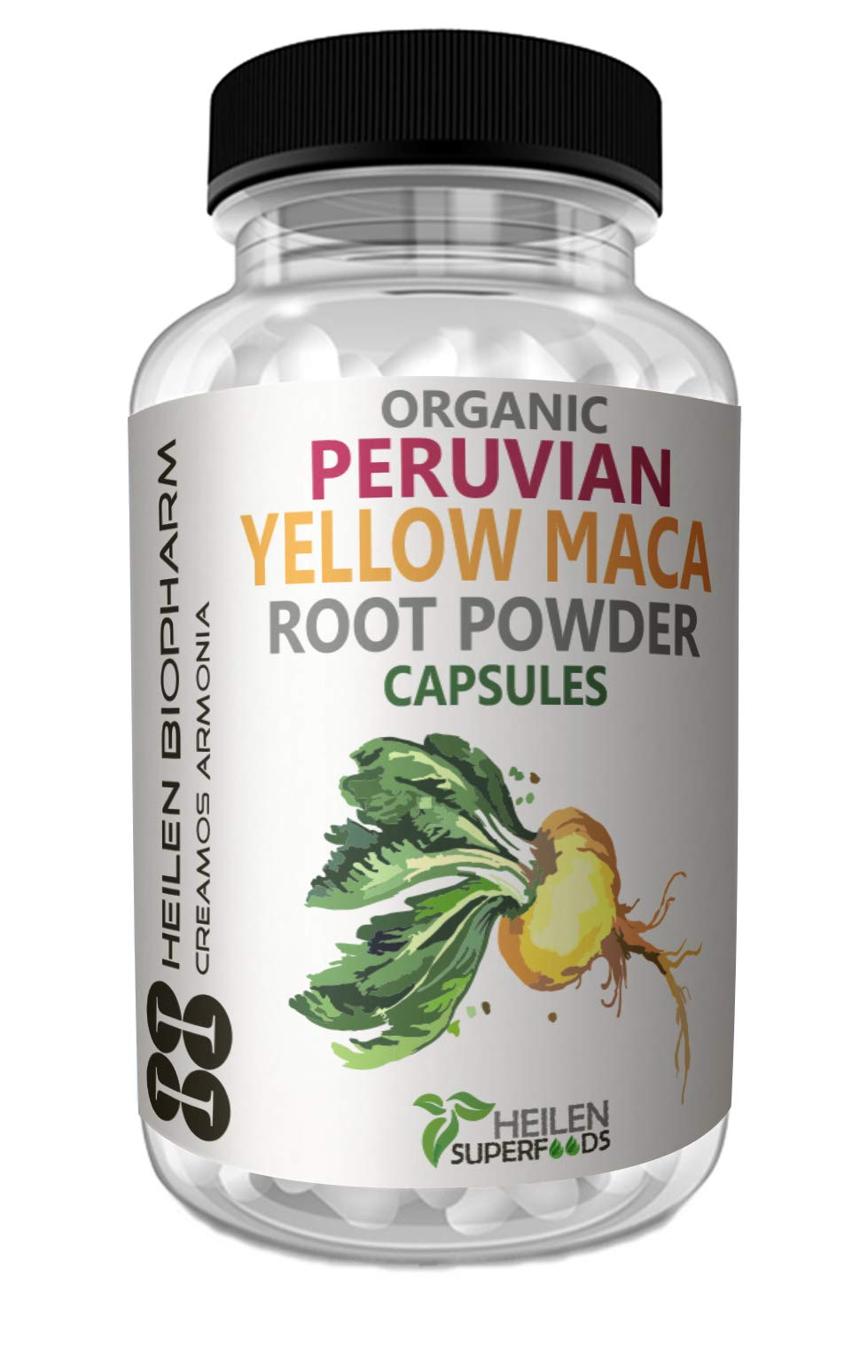 Heilen Biopharm Peruvian Yellow Maca Root Powder Capsules Health Improvement - 500 mg x 180 Per Bottle Pack of 1