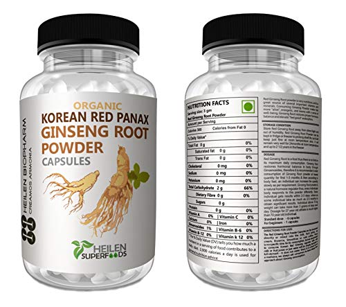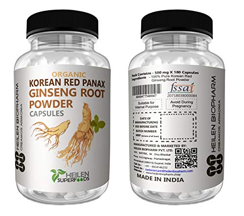 Heilen Biopharm Korean Red Panax Ginseng Root Powder 500 mg X 180 Capsules 90 gm
